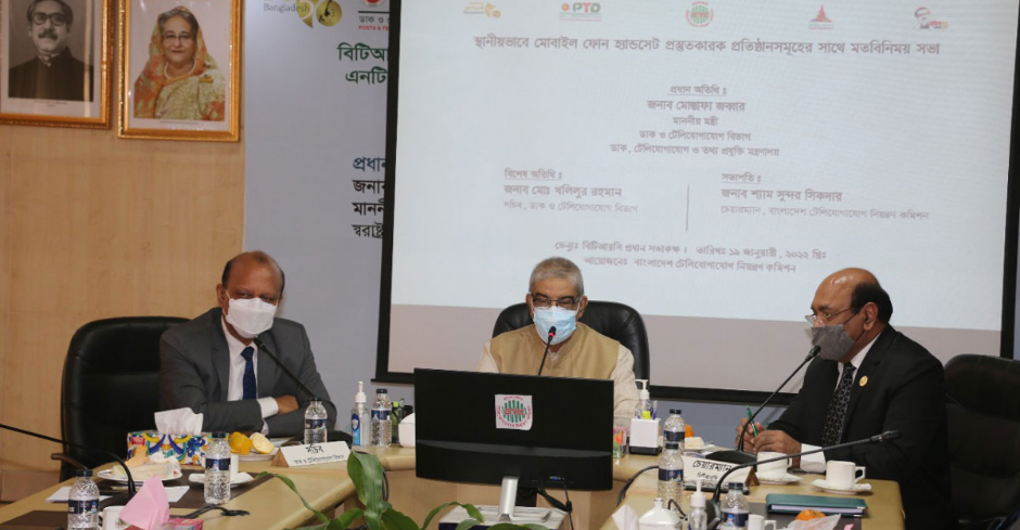 ডাক ও টেলিযোগাযোগ মন্ত্রী মোস্তাফা জব্বার বলেছেন, আমরা মোবাইল ফোন হ্যান্ডসেট উৎপাদক হয়েছি, এবার রফতানিকারক হতে হবে। মোবাইল হ্যান্ডসেট উৎপাদন